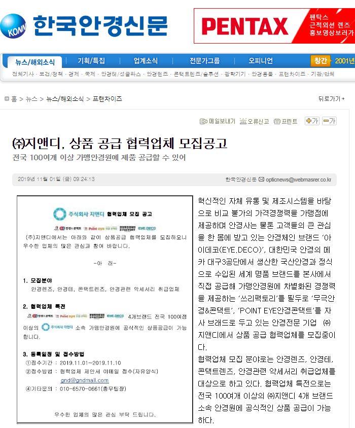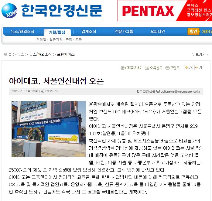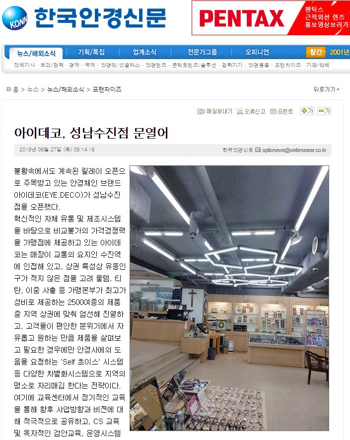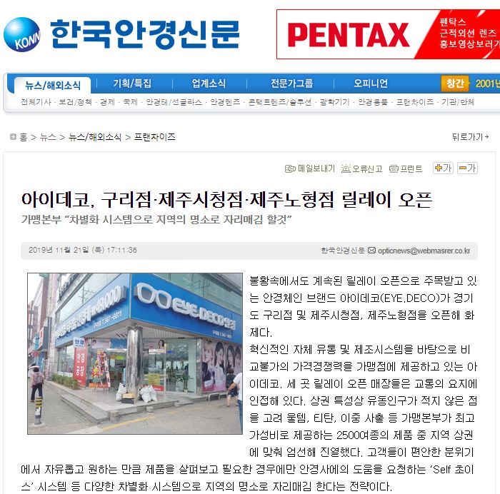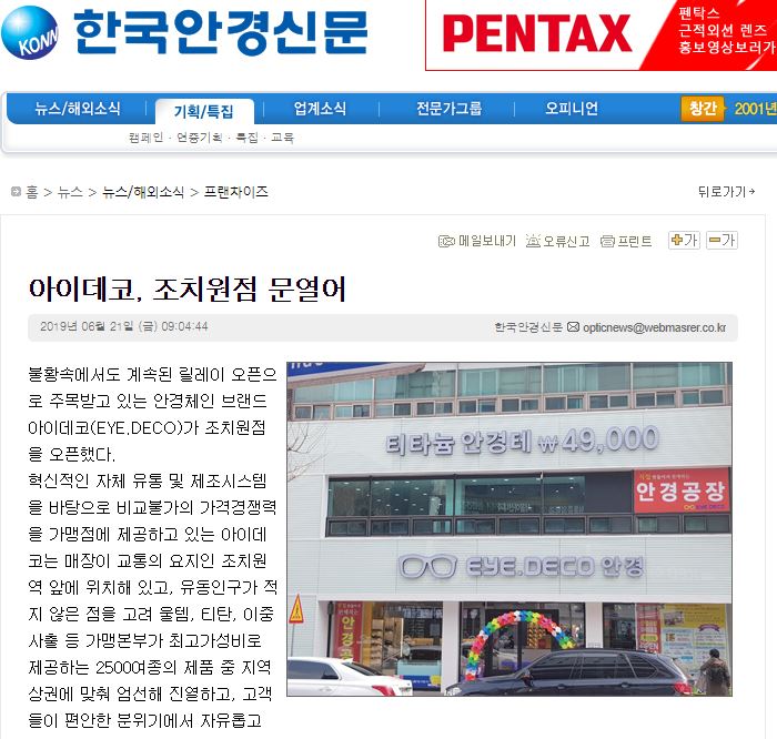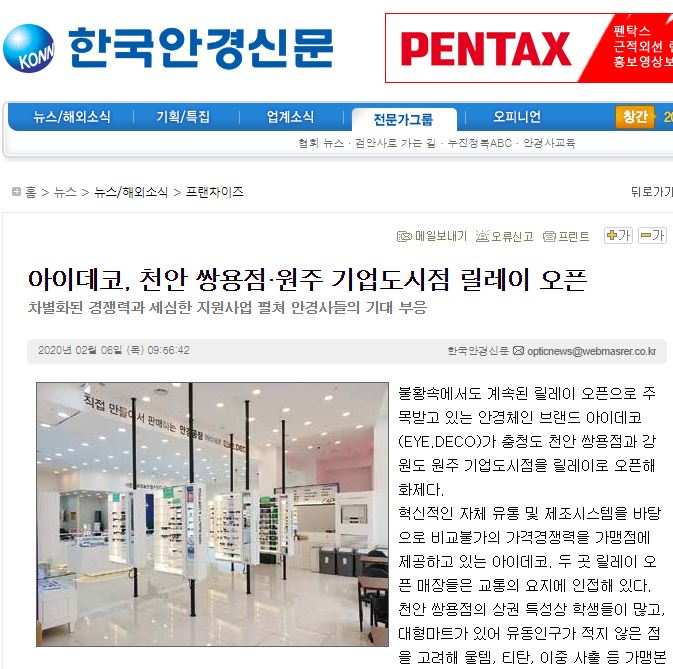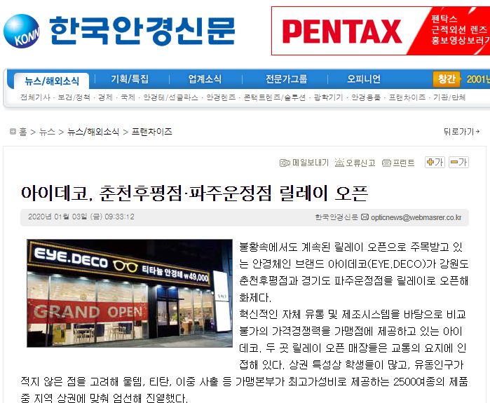 불황속에서도 계속된 릴레이 오픈으로 주목받고 있는 안경체인 브랜드 아이데코(EYE.DECO...