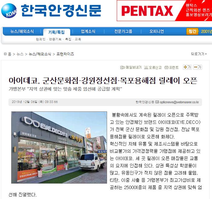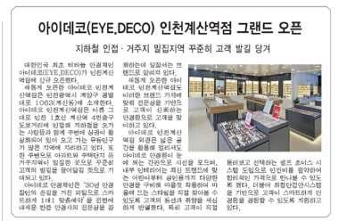 국내 대표 안경체인 브랜드 아이데코(EYE.DECO)가 최근 대구 서대구점(대구광역시 서구 국...